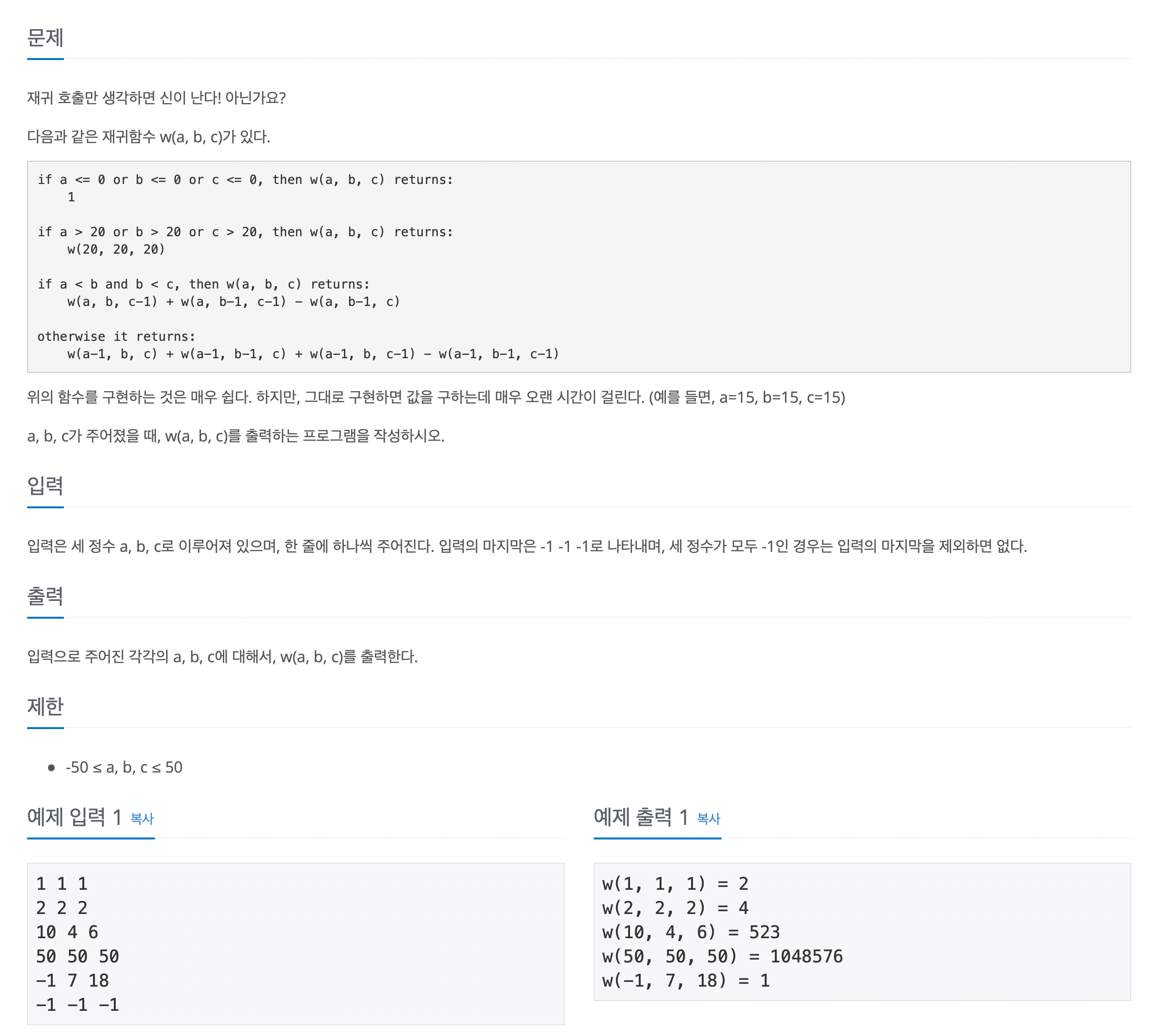그리고 w값이 존재하면 그건 dp 에 저장해서 한 번계산한 내용에 대해서는 계속 그 값을 이용할 수 있게 해준다.