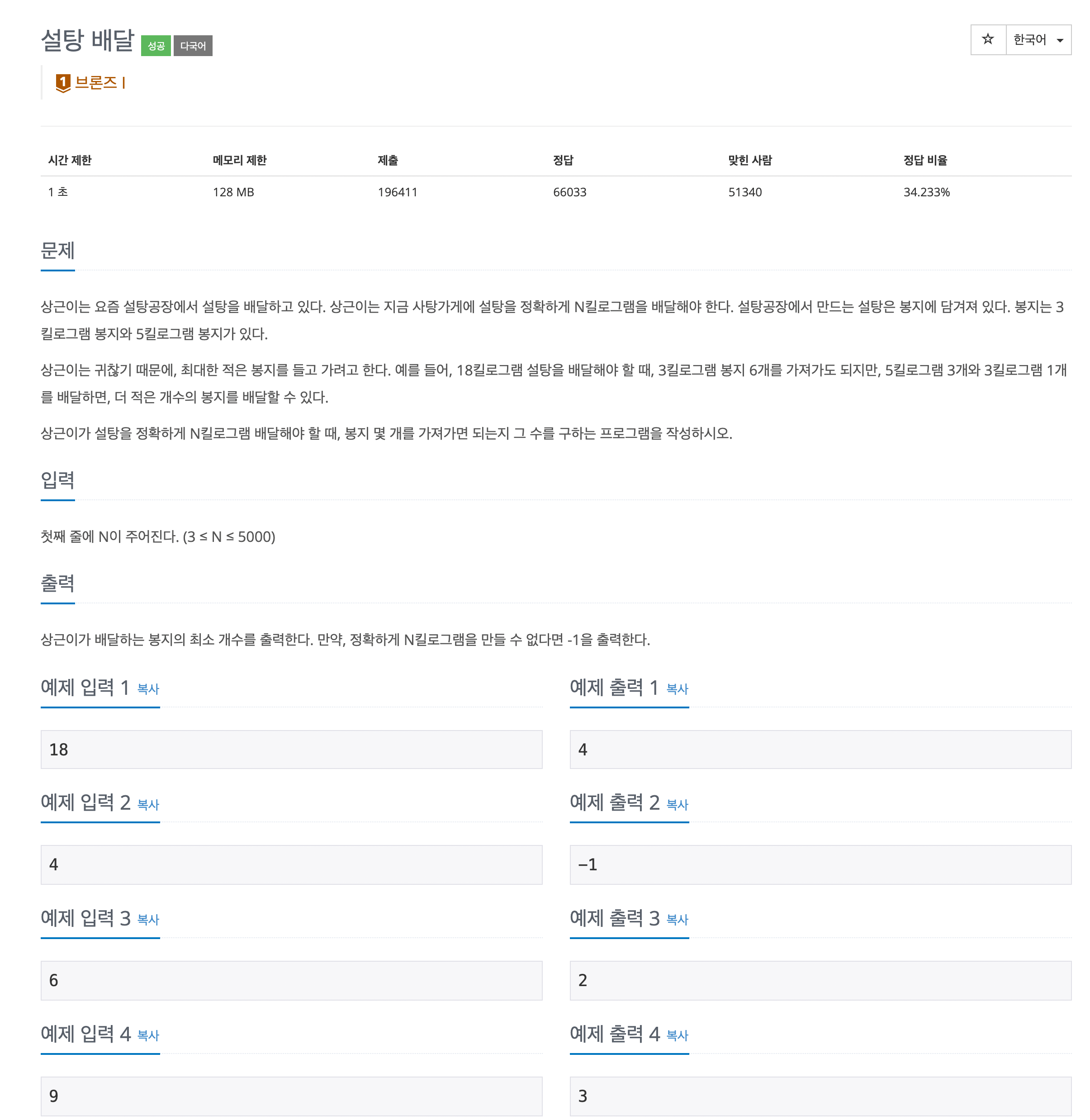2839번: 설탕 배달