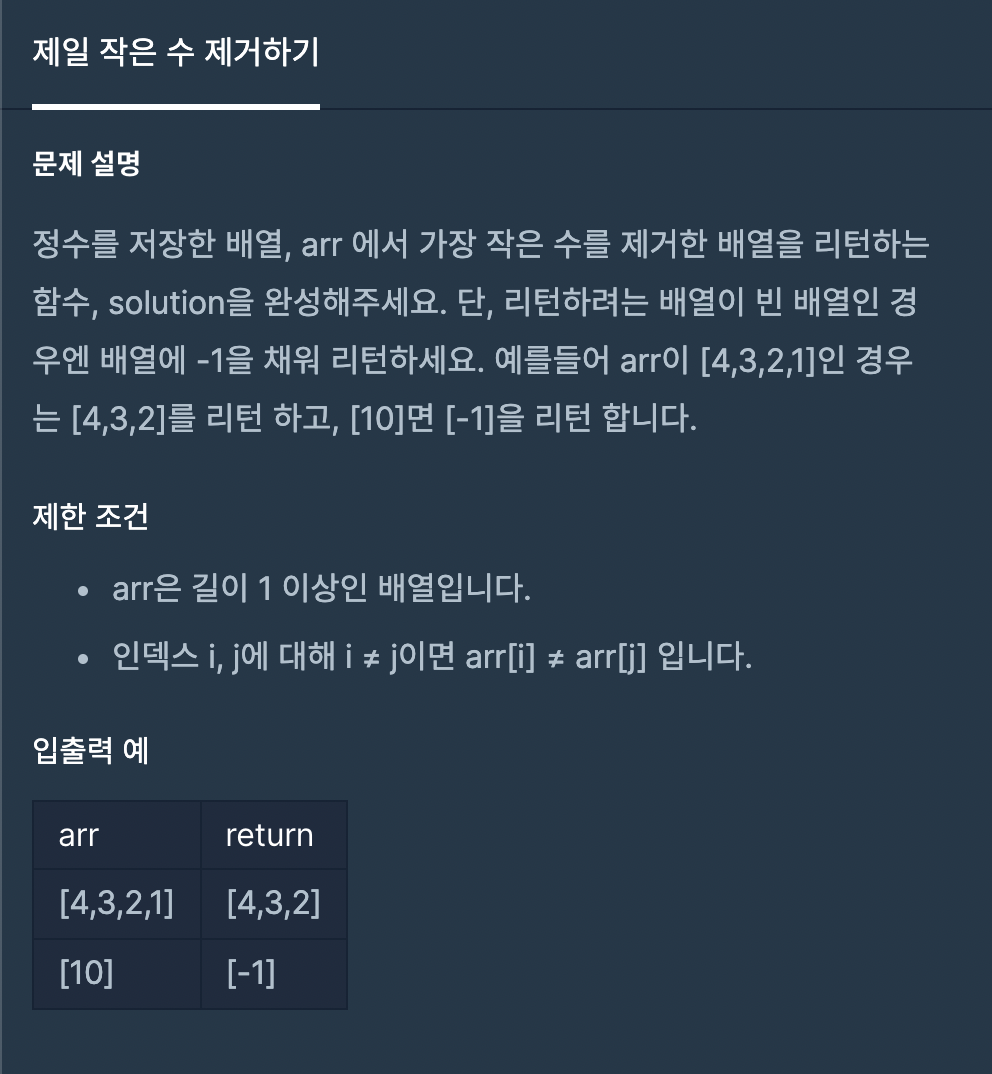코딩테스트 연습 - 제일 작은 수 제거하기