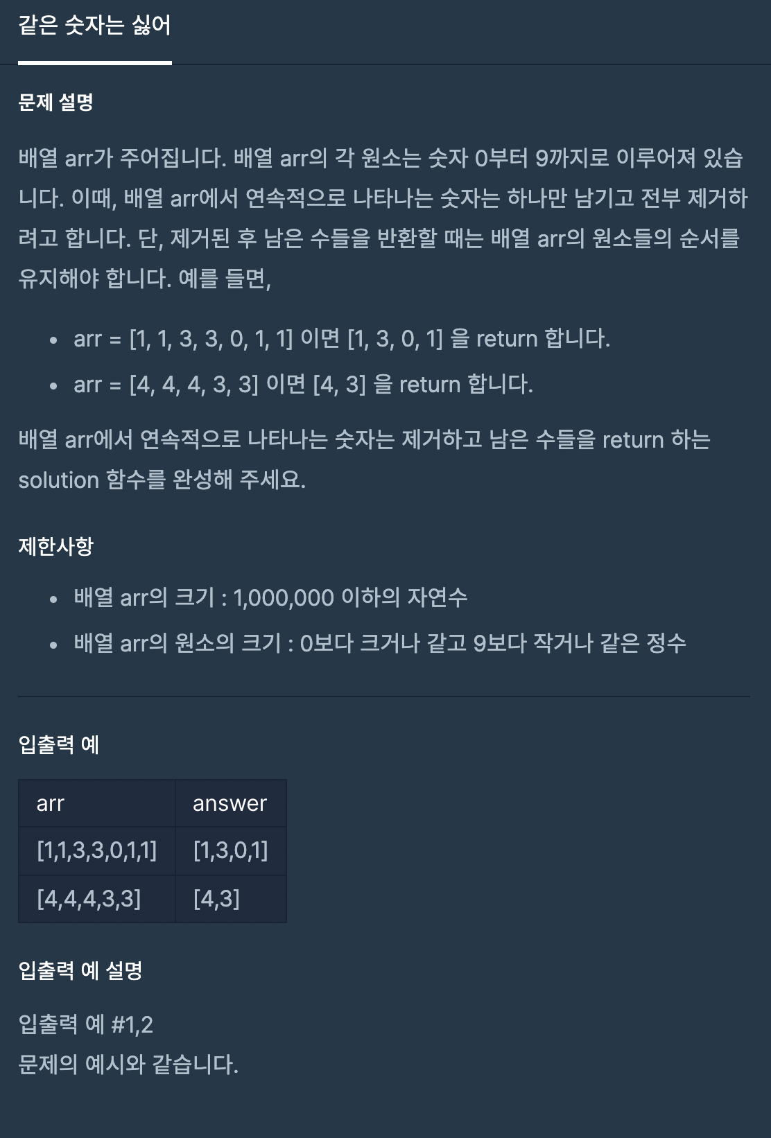 https://programmers.co.kr/learn/courses/30/lessons/12906